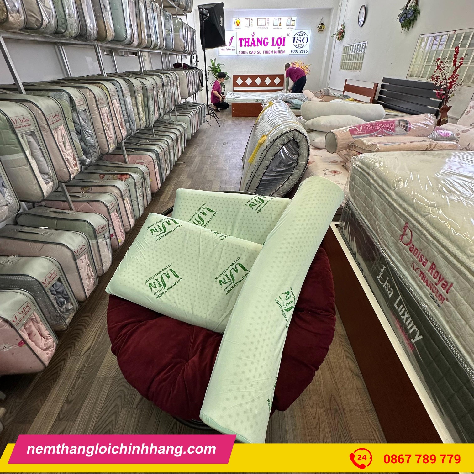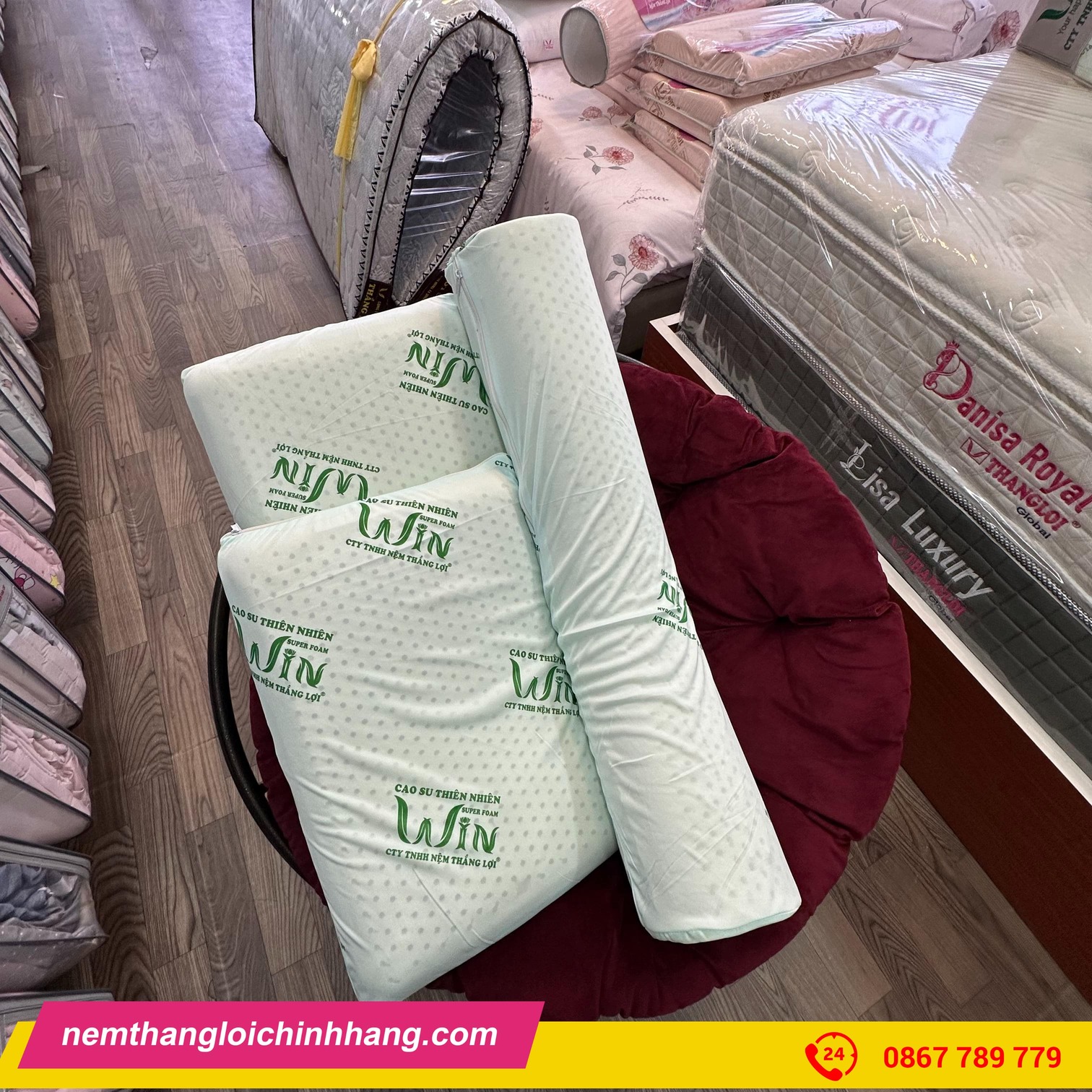 Gối cao su thiên nhiên Thắng Lợi hiện được phân phối tại nhiều cửa hàng chăn ga gối đệm uy tín trên toàn quốc. Bạn có thể đặt mua trực tiếp tại website nemthangloichinhhang.com hoặc liên hệ hotline: 0867.789.779 để được tư vấn miễn phí